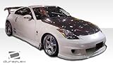 | ✚✚✚ Duraflex FRP Nissan 350Z Spirit Body Kit 4pc > 2003-2008 Extreme Dimensions has revolutionized fiberglass marketing with their premium Duraflex aerodynamics. Duraflex is not flexible like urethane or plastic bumpers. Duraflex fiberglass combines fiberglass, plastic, and flex resins to obtain its unique features. Because of these features, Duraflex technology obtains a durability rate than the average fiberglass product, resulting in reduced shipping damages. Duraflex products come complete with a black primer finish, high quality mesh grille if applicable, generic hardware kit, and a basic guide to help you install the product. This revolutionary product allows the consumer to receive a premium fiberglass product at an affordable price. All fiberglass parts require modification, shaving, sanding, drilling, filling in order to ensure proper fitment.FeaturesHigh quality 6 oz. fiberglassProfessional prep work requiredCutting, Shaving, Filling required on FRP partsBlack primer finishHigh quality mesh grilleInstallation GuideGeneric Hardware Kit (most parts)Reduced damage rate up to 75%DISCLAIMER: Due to differences in products and design, durability test results may vary.