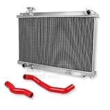 | ✚✚✚ DPT, RA-350Z-G35-2+RH-350-RD, Full Aluminum Performance Two Dual Row Core Chrome Radiator with Bolt On 3 Ply 4mm Red Silicone Radiator Hoses Overall Size 29.5"x19.5"x2.5" for Manual Transmission Only This Aluminum Radiator is designed to provide maximum cooling efficiency to prevent premature engine failure. Its light-weight, and high-heat transferring aluminum features a tube and fin design that, dramatically increases surface area that enables the heat to dissipate more efficiently. This Aluminum Radiator is at least 40% more efficient than stock ones. Most importantly, it has a much higher capacity for coolant than stock ones, which means that your cooling system will be more efficient and will be more resistant to temperature surges in racing applications.