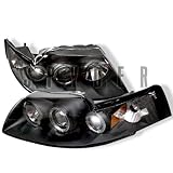 | ✚✚✚ Spyder PRO-YD-FM99-1PC-AM-BK Ford Mustang Halo Black Projector Headlights Assembly (Sold in Pairs) Headlights are one of the most important parts of your vehicles safety prevention features. When headlights are dim, have failed or are not adjusted properly, there is a drastic decrease in the driver's visibility. It is essential to equip your car with adequate lighting so you can see and also been seen by others. Spyder Auto headlights offer a sleek, innovative design that delivers optimal quality and instant upgrade to your outdated headlights.